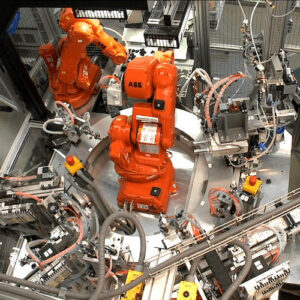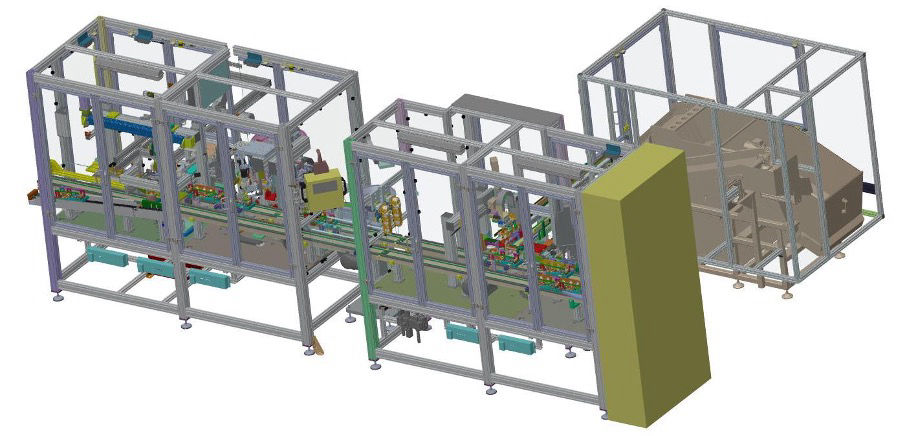 Jedná se o manipulační automat ke vstřikovacímu lisu. Zařízení vyrábíme ve dvou variantách tj. s „horkým“ a „studeným“ vtokem. Na strojích se kompletují iniciátory do airbagů vozidel. U obou variant se jedná o plně automatický stroj, do kterého vstupují dva díly – plastový kalíšek a podsestava (squib). Obsluha pouze doplňuje díly do kruhových podavačů a kontroluje hotovou produkci.